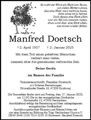 Manfred Doetschgestorben am 2. Januar 2025