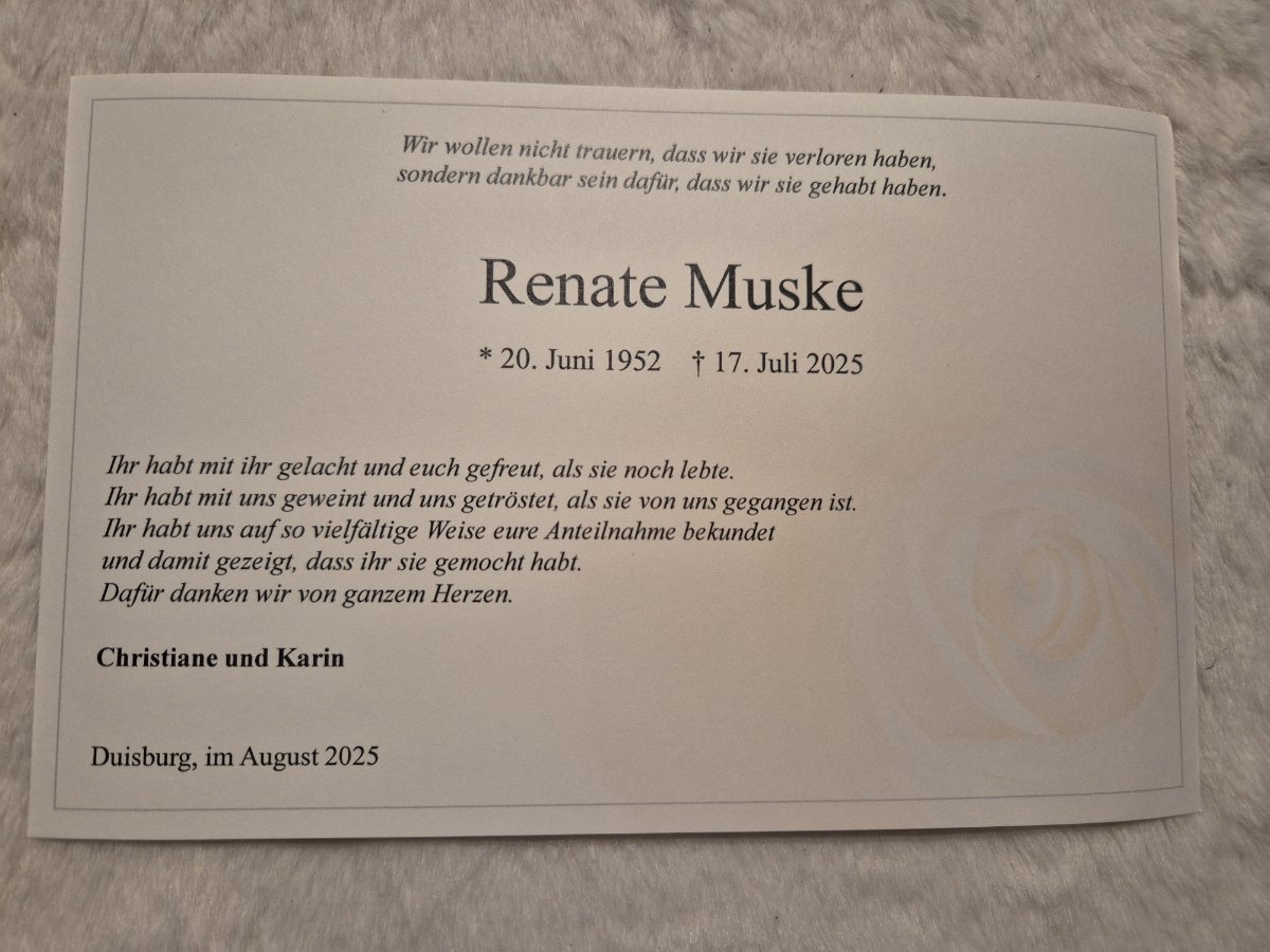 Ich denk an euch. Ich hoffe es geht euch allen gut.